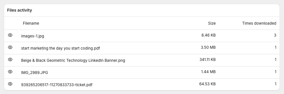 For subscriptions that allow file downloads, you’ll also see a Files Activity section.