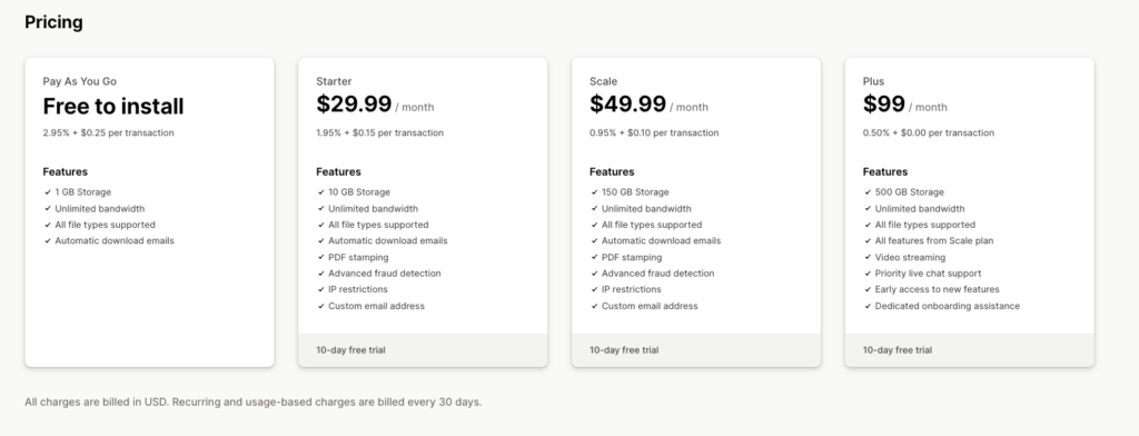 Best for stores just getting started with digital downloads or testing their subscription model.